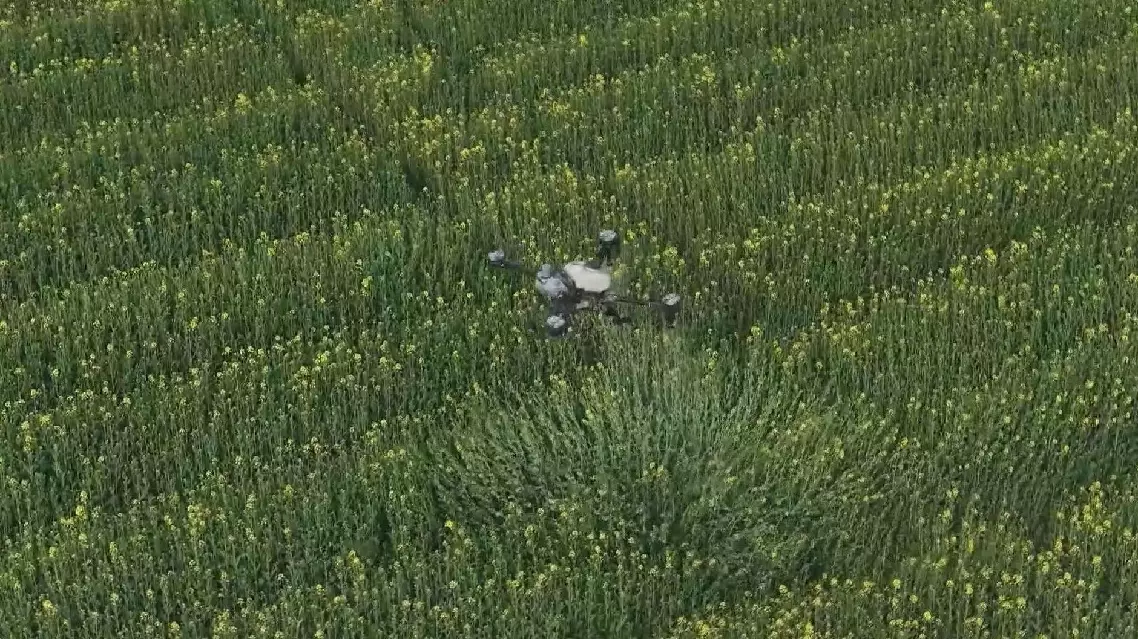 Drone services, accessible via a mini-program on China's popular social media platform "Weixin" (domestic version of Wechat), have changed spring field management for small-scale growers in Dangyang City, central China's Hubei Province, who can now have pesticide sprayed on their rapeseed fields with just a few clicks on their phones.