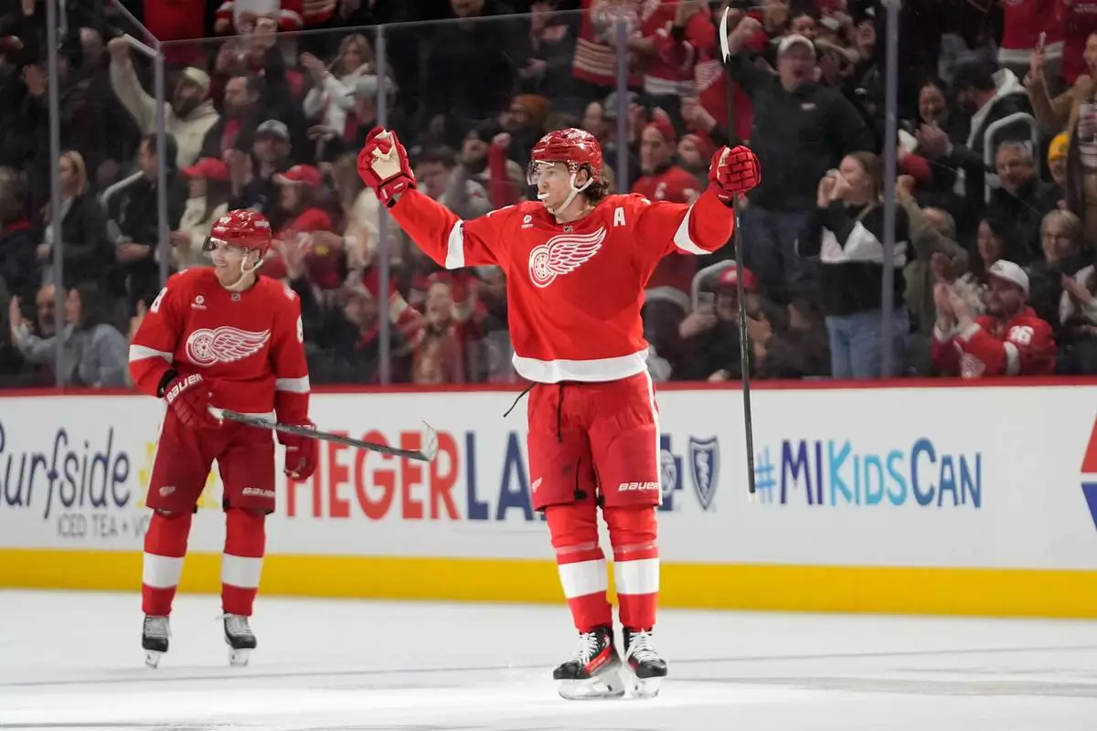 DETROIT (AP) — Patrick Kane scored twice for Detroit to move into sole possession of fourth place on the all-time goals list for NHL players born in the U.S. and lead the Red Wings to a 5-2 victory over the Calgary Flames on Monday night.