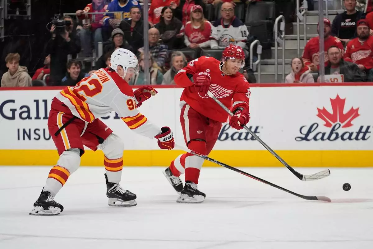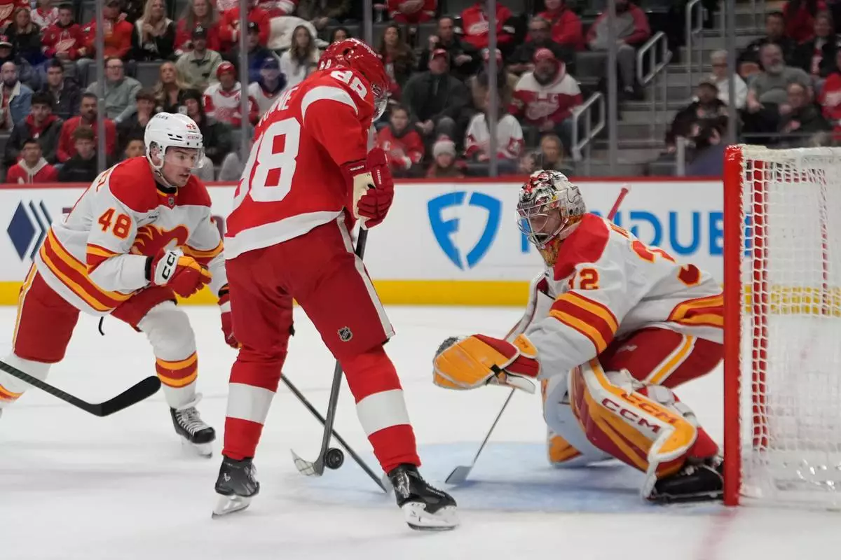 Morgan Frost scored late in the first period to put the Flames on the board first, but Detroit scored three times in a span of 5:34 early in the second period to take control. Kane had the first and third goals in that surge.