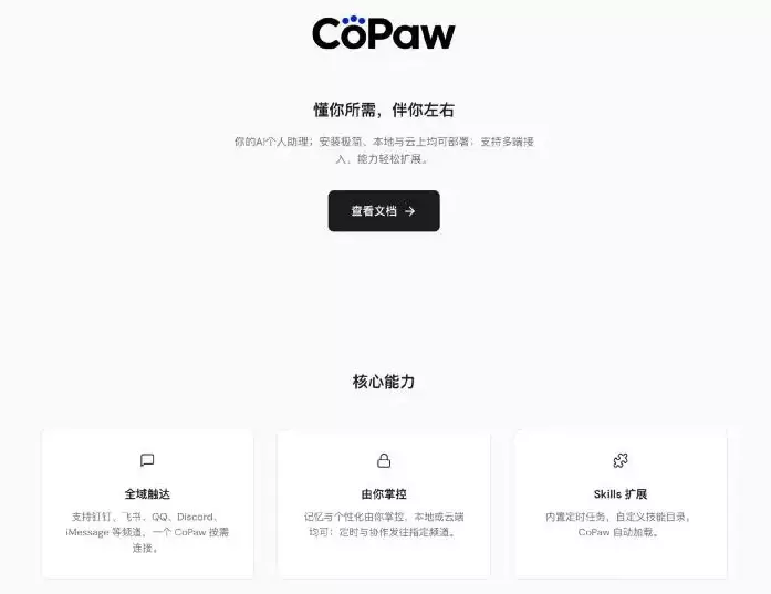 The personal workbench "CoPaw" released by Alibaba, Photo source: Screenshot of CoPaw