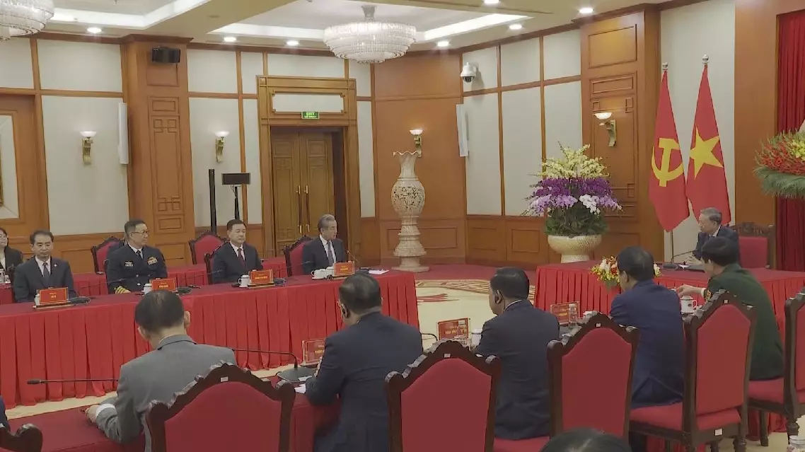 General Secretary of the Communist Party of Vietnam (CPV) Central Committee To Lam on Monday met with Chinese Foreign Minister Wang Yi, Minister of Public Security Wang Xiaohong and Minister of National Defense Dong Jun, who were in the Vietnamese capital of Hanoi to attend the first ministerial meeting of the China-Vietnam "3+3" strategic dialogue on diplomacy, defense and public security.