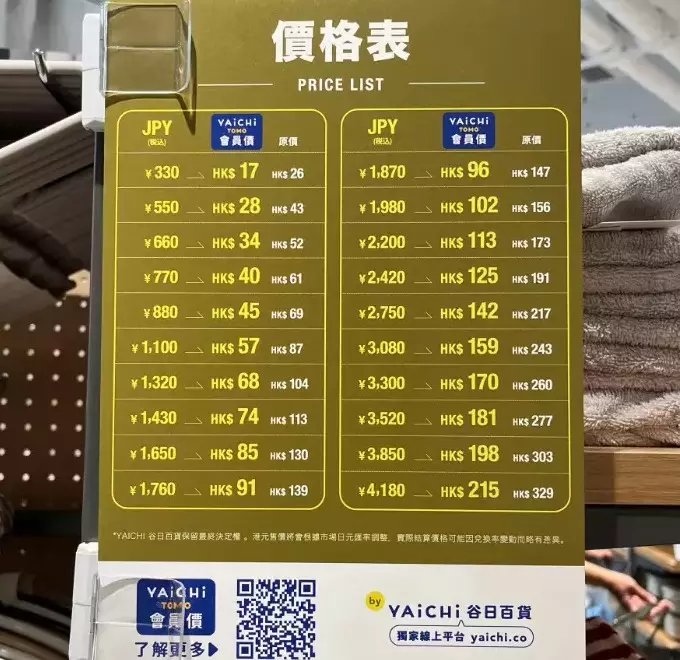 In the Hong Kong retail environment, Elmas chose to institutionalize cost sharing through a membership system. The group launched the annual membership plan "YAICHI TOMO," with an annual fee of HKD$99. For example, for a 330 yen item, the member price is HKD$17, while the non-member price is HKD$26.