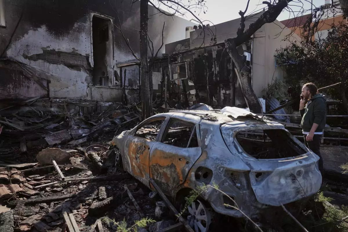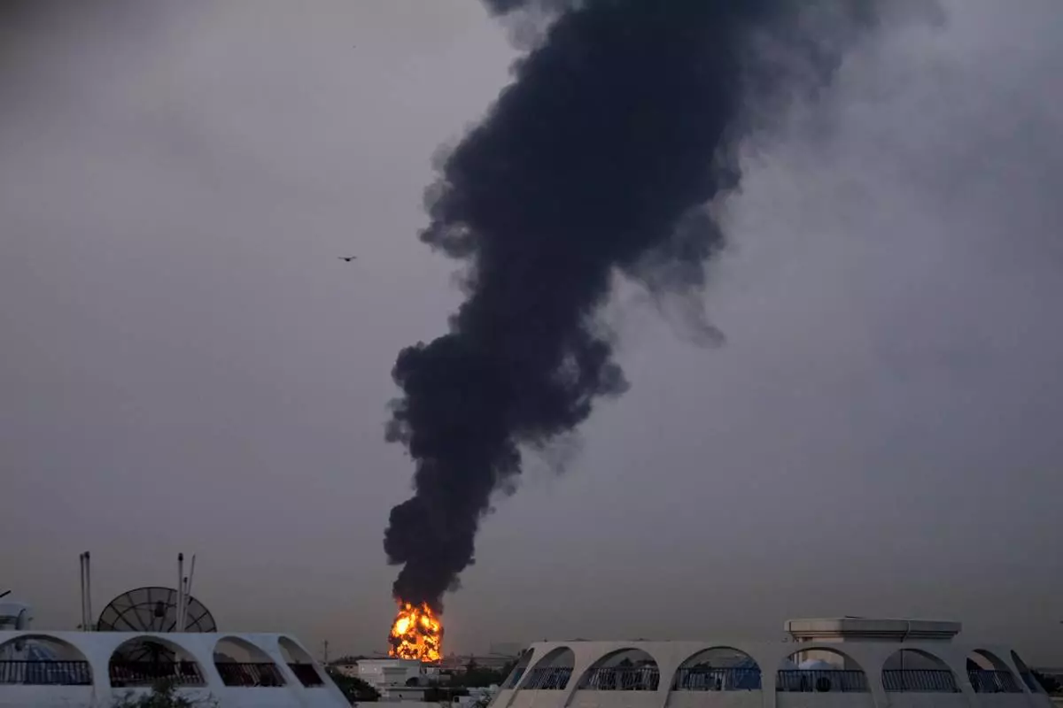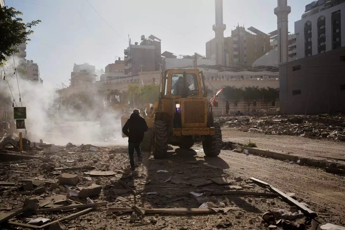 Vigilantes walk past watermelons following Monday's bomb blast at a market in Maiduguri, Nigeria, Tuesday, March 17, 2026. (AP Photo/Jossy Ola)