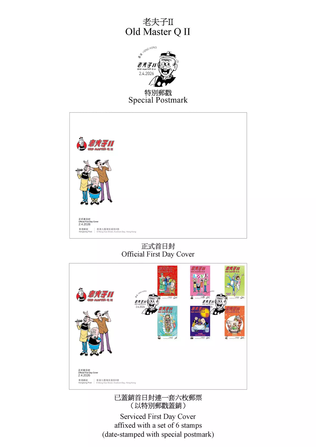 Hongkong Post announced today (March 18) that a set of special stamps and associated philatelic products on the theme of "Old Master Q II" will be released for sale on April 2 (Thursday).