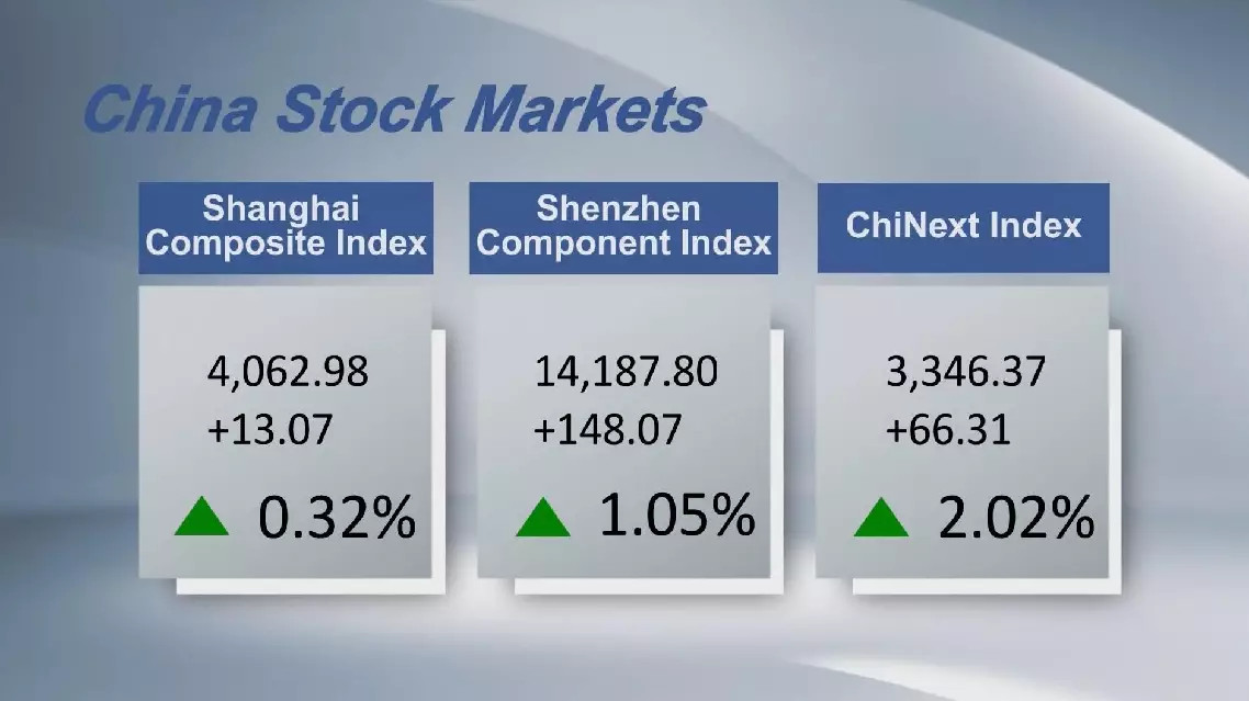 Chinese stocks closed higher on Wednesday, with the benchmark Shanghai Composite Index up 0.32 percent to 4,062.98 points.