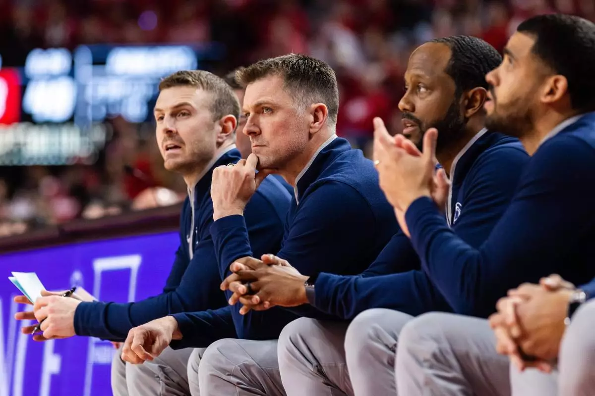 FILE - Penn State assistant coach Joe Crispin watches game action from the bench during the second half of an NCAA college basketball game against Nebraska on Feb. 21, 2026, in Lincoln, Neb. (AP Photo/Bonnie Ryan, File)