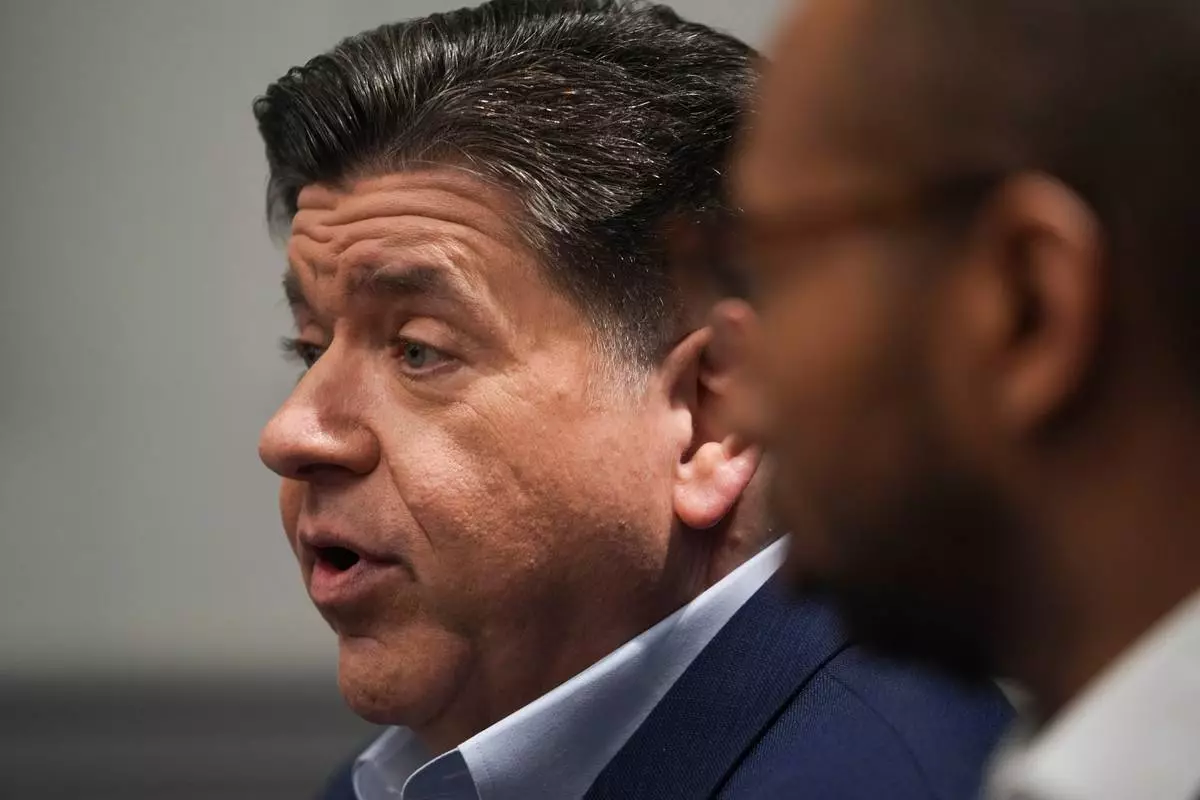 Illinois Gov. JB Pritzker attends an interview, Wednesday, March 18, 2026, in Chicago. (AP Photo/Erin Hooley)