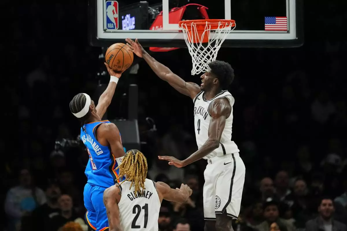 NEW YORK (AP) — Shai Gilgeous-Alexander scored 20 points and the Oklahoma City Thunder beat the Brooklyn Nets 121-92 on Wednesday night for their 10th straight win.