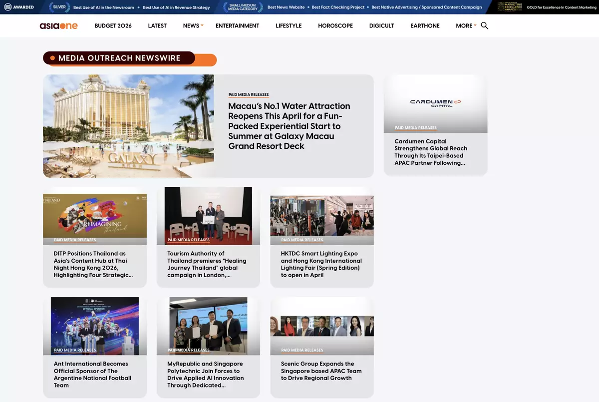 Ms Jennifer Kok, Founder and CEO of Media OutReach Newswire, said: "We are pleased to announce this partnership with AsiaOne, a digital news pioneer that has been a trusted voice in Singapore for 30 years. As the first global newswire they have chosen to partner with, this collaboration reflects the high level of credibility we have built. Together with our existing partnerships with CNA and ANN, this reaffirms Media OutReach Newswire's role as the definitive global newswire for Singapore, Southeast Asia, and the wider Asia Pacific region."