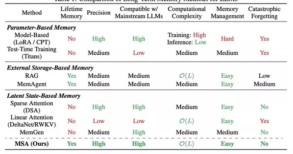 Against this backdrop, the MSA paper sets an ambitious goal: to design an end-to-end trainable latent state memory framework that scales to 100M tokens with linear complexity while maintaining high precision. The emergence of MSA aims to directly challenge and shatter the aforementioned "Impossible Triangle," endowing LLMs with true "lifelong memory."