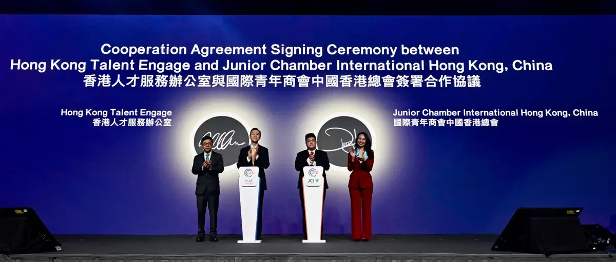 Witnessed by Mr Sun, the Director of HKTE, Mr Felix Chan, signed a co-operation agreement with the President of the Junior Chamber International Hong Kong, China, Mr Daryl Lin. Through the organisation's network of over 150000 young leaders and members across 114 countries and regions worldwide, the agreement aims to invite global talent to explore development opportunities in Hong Kong and the Guangdong-Hong Kong-Macao Greater Bay Area.