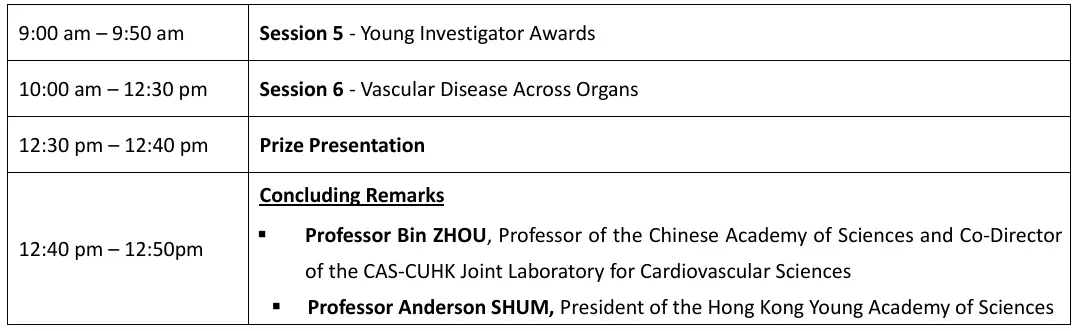 The second day of the Sub-Conference (21 March) will continue with explorations into "Vascular Disease Across Organs". It will also feature the "Young Investigator Awards" academic presentations and an announcement on the results of the cardiovascular disease research poster competition. Professor Bin ZHOU, Professor of the Chinese Academy of Sciences and Co-Director of the CAS-CUHK Joint Laboratory for Cardiovascular Sciences, and Professor Anderson SHUM, President of YASHK, will deliver the closing remarks.
