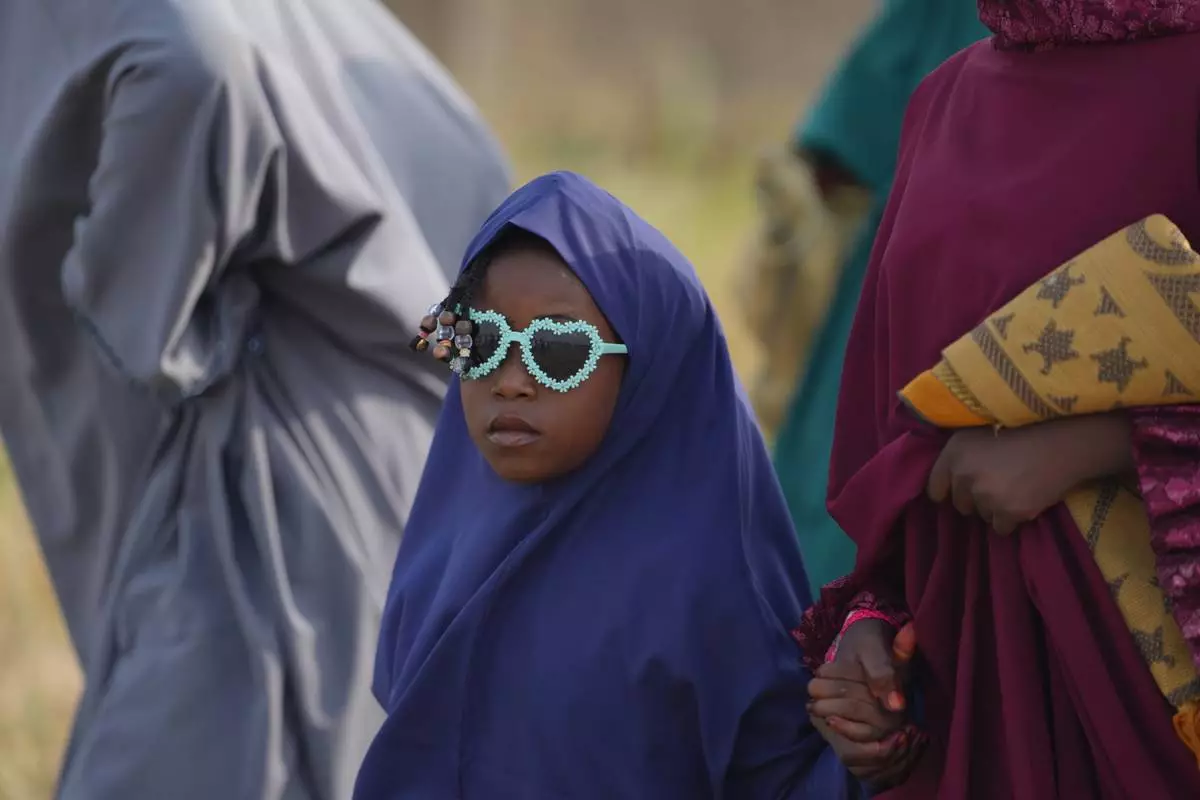 A girl arrives for Eid al-Fitr prayers, marking the end of the fasting month of Ramadan in Lagos, Nigeria, Friday, March 20, 2026. (AP Photo/Sunday Alamba)