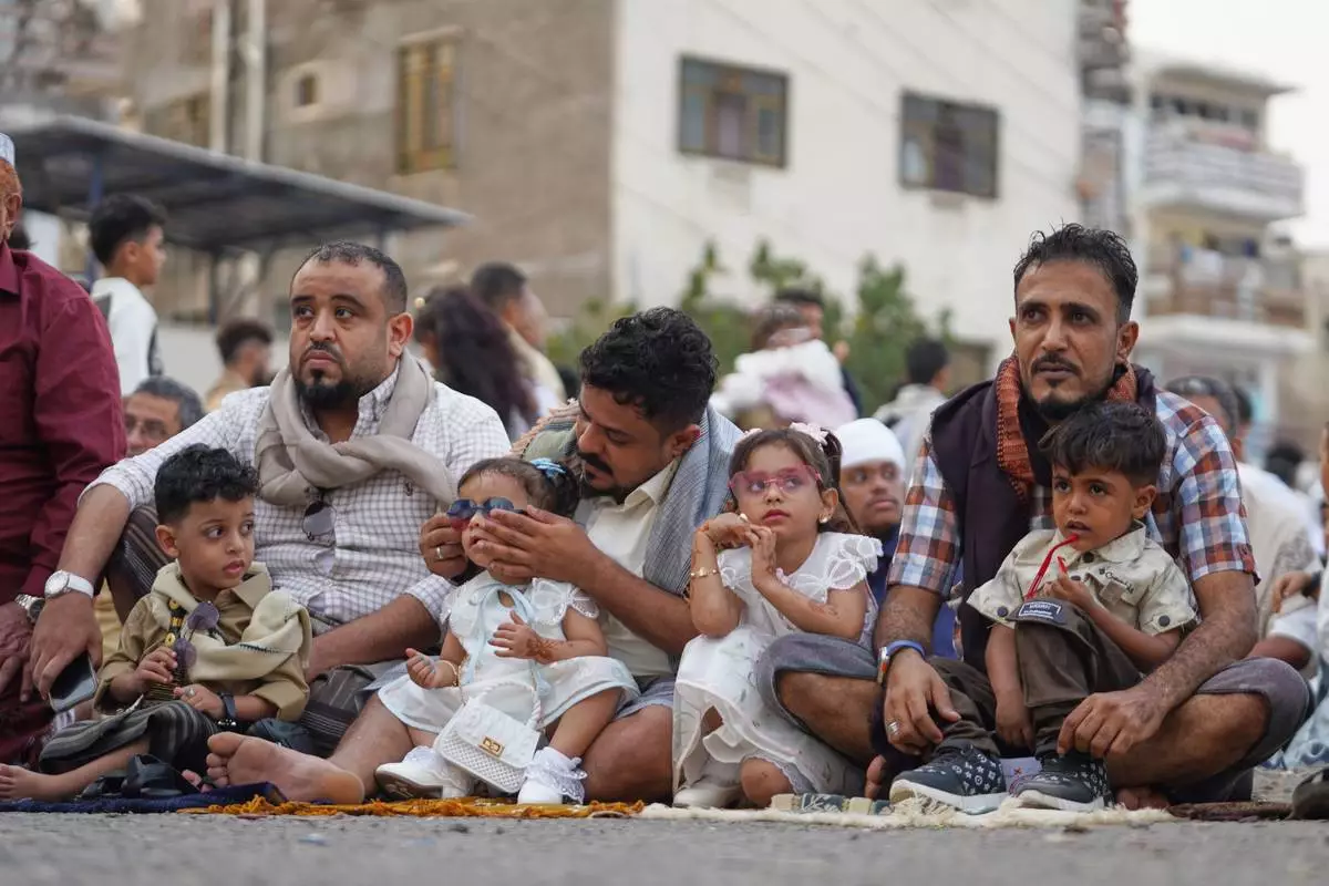 People walk to pray Eid Al-Fitr prayers, marking the feast after Ramadan, celebrating the end of fasting, in Aden, Yemen, Friday, March 20, 2026. (AP Photo/Abdulnasser Alseddik)