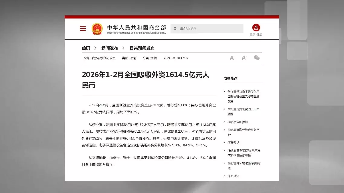 In the first two months, the actual amount of foreign investment used by the manufacturing industry reached 47.52 billion yuan (nearly 6.9 billion U.S. dollars), while for the service industry, the figure stood at 111.22 billion yuan (over 16 billion US dollars).