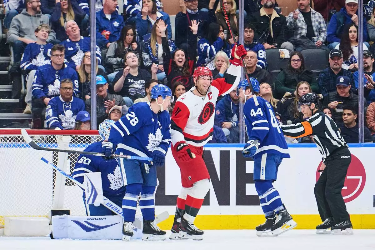 TORONTO (AP) — Alexander Nikishin scored 41 seconds into overtime to give the Eastern Conference-leading Carolina Hurricanes a 4-3 victory over the Toronto Maple Leafs on Friday night.