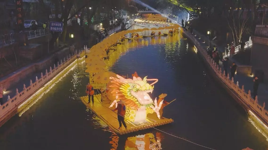 In Beijing, for the first time, a lively dragon parade performed by a troupe from south China's Guangxi Zhuang Autonomous Region wowed crowds during a temple fair on a river, attracting numerous locals and tourists.