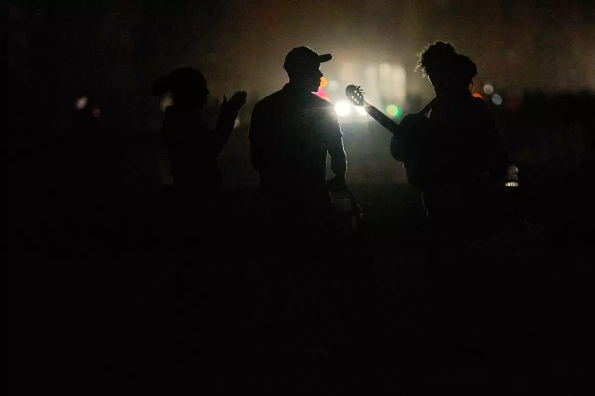 People spend the dark on the Malecon during a blackout in Havana, Cuba, Saturday, March 21, 2026. (AP Photo/Ramon Espinosa)