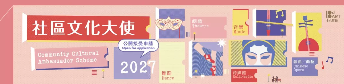 The Leisure and Cultural Services Department is inviting proposals from local arts groups and performing artists for the Community Cultural Ambassador Scheme 2027. Selected arts groups and artists will conduct performing arts in public spaces across different districts through outreach activities in 2027.
