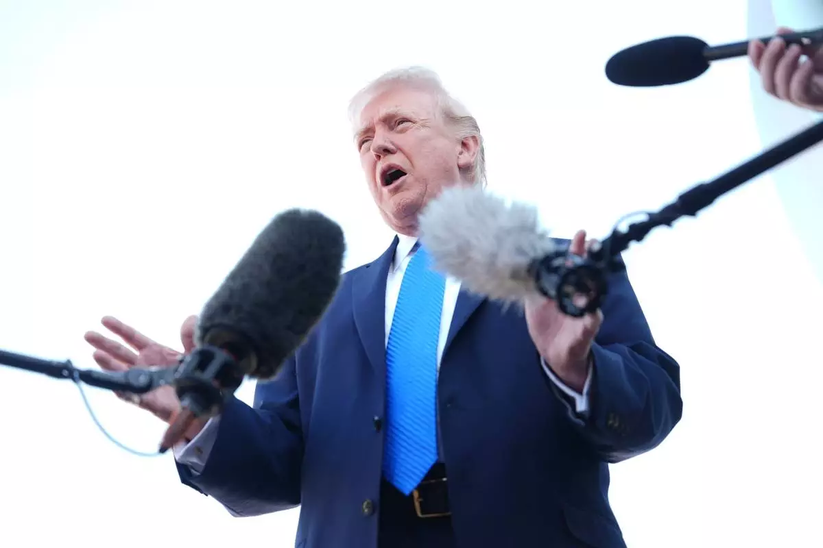 President Donald Trump speaks with the media before boarding Air Force One, Monday, March 23, 2026, at Palm Beach International Airport in West Palm Beach, Fla. (AP Photo/Mark Schiefelbein)