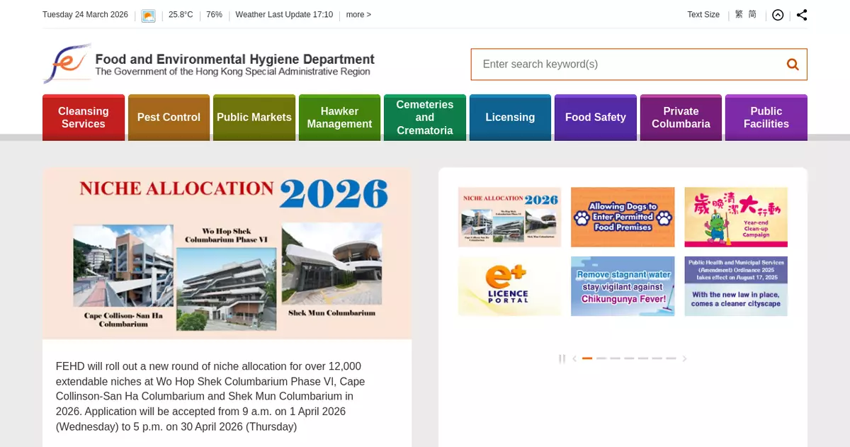 The Food and Environmental Hygiene Department (FEHD) announced today (March 24) the latest arrangement and enhancement measures for public niche allocation.