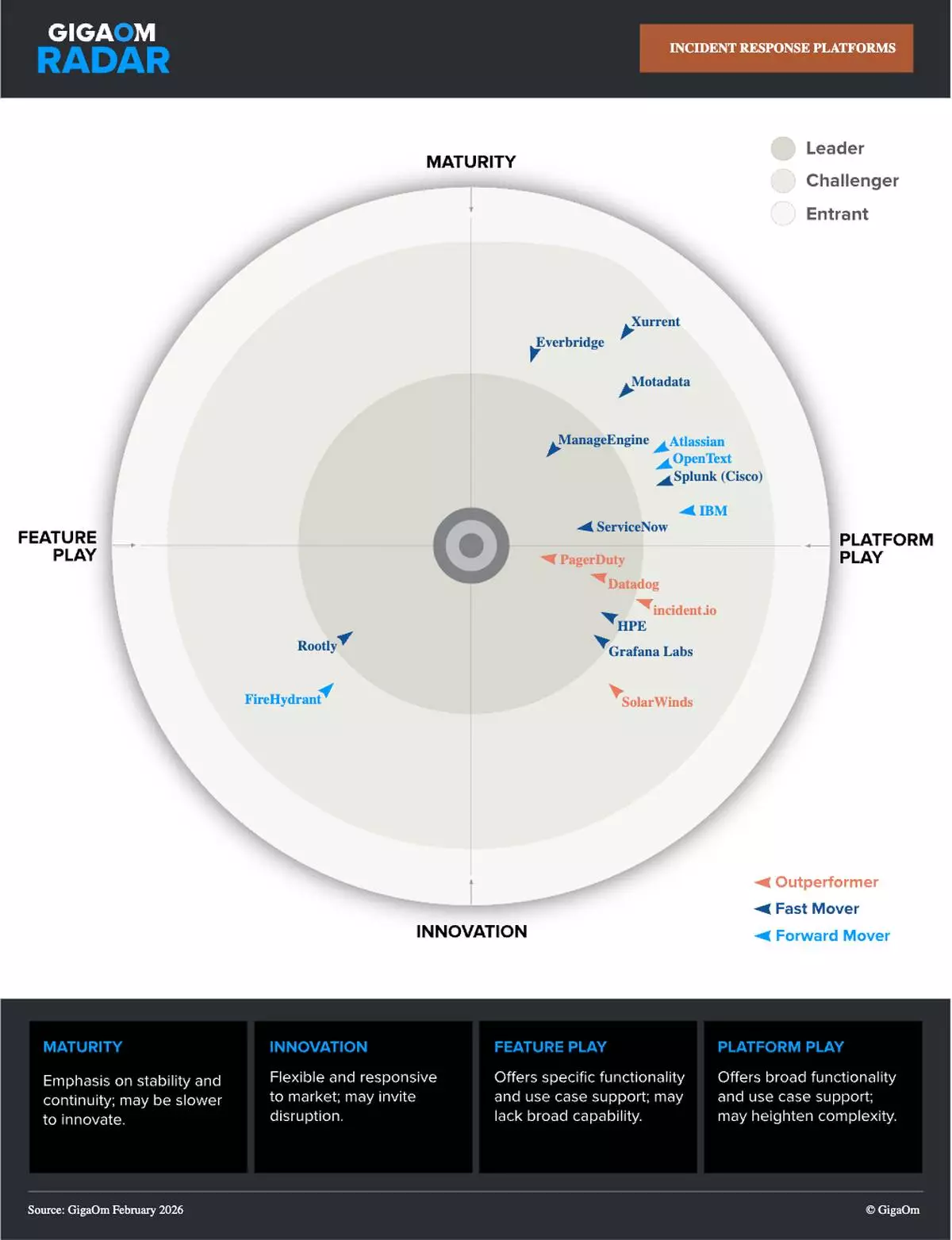 The 2026 GigaOm Radar for IT Incident Response Platforms evaluates 17 vendors in a market that has evolved from simple alert routing to comprehensive operational control platforms that coordinate detection, response and learning across modern digital environments. The report shows that organizations are increasingly adopting incident response platforms as centralized coordination layers that help teams manage operational complexity, maintain shared situational awareness and continuously improve reliability.