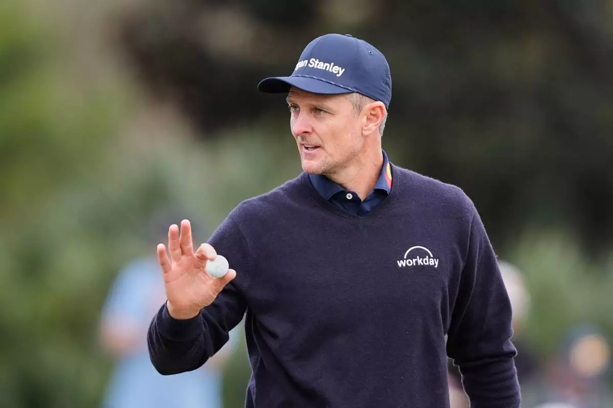 Justin Rose of England acknowledges applause after his putt on the 11th green during the second round of The Players Championship golf tournament Friday, March 13, 2026, in Ponte Vedra Beach, Fla. (AP Photo/Gerald Herbert)