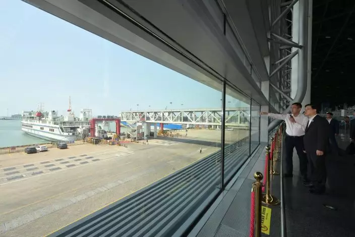 The Chief Executive, Mr John Lee, continued his visit programme in Hainan today (March 25). Photo shows Mr Lee (first right) visiting the centralised inspection site of the Nangang "Second-Line Port". Source: HKSAR Government Press Releases