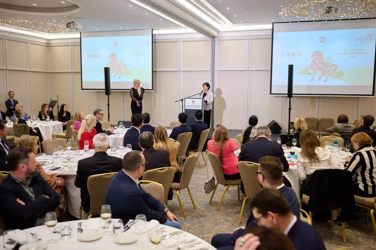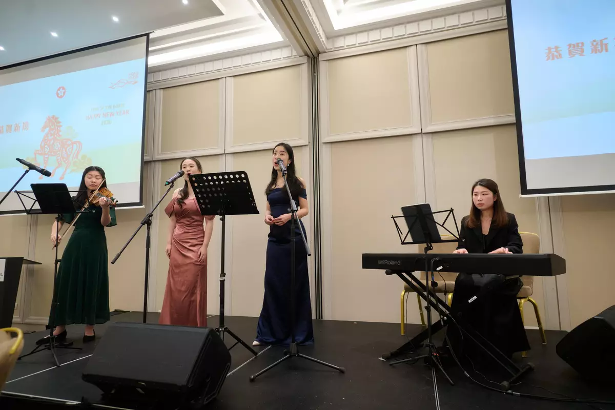 The guests of the reception in Bucharest were greeted by a curated performance by Hong Kong musicians based in Europe, featuring a celebratory medley that bridged Chinese and European musical traditions in a contemporary style, showcasing the talents of Hong Kong's artists as well as the city's vibrant cultural heritage and spirit of creativity.