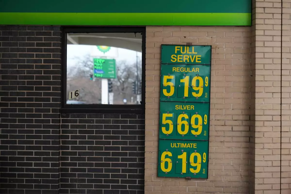 Gas prices are displayed at a station Tuesday, March 24, 2026, in Chicago. (AP Photo/Erin Hooley)