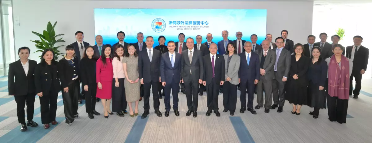 Mr Lam and the delegation visited the Zhejiang Merchants Foreign-Related Legal Service Center in the morning to gain an in-depth understanding of the current state of foreign-related legal services in Zhejiang Province, and to explore co-operation opportunities between Hong Kong and Zhejiang in areas such as talent nurturing, international arbitration, and commercial dispute resolution.