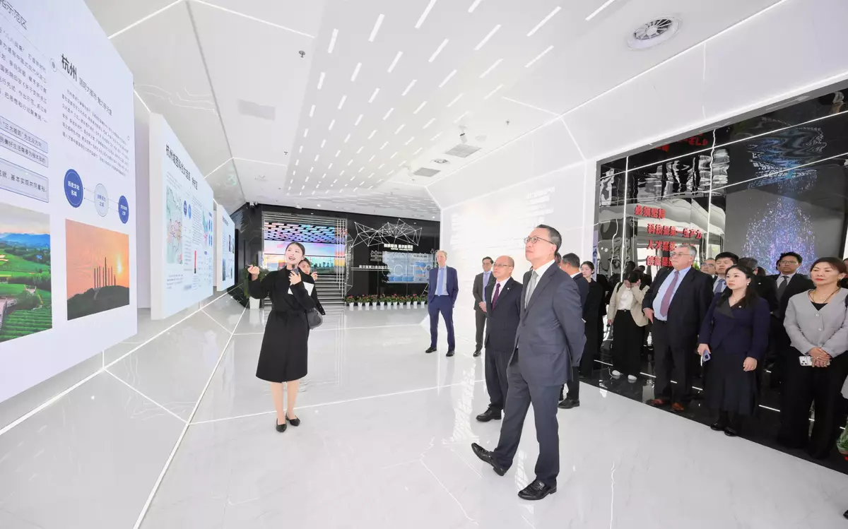 In the afternoon, Mr Lam and his delegation visited the Hangzhou Future Sci-Tech City Urban Exhibition Center to gain insights into Hangzhou's advancements in areas including smart city development and AI. They then met with local business representatives to learn about the latest business developments and promote Hong Kong's status as an international financial centre and the unique advantages of its common law system in assisting Mainland enterprises to expand overseas.