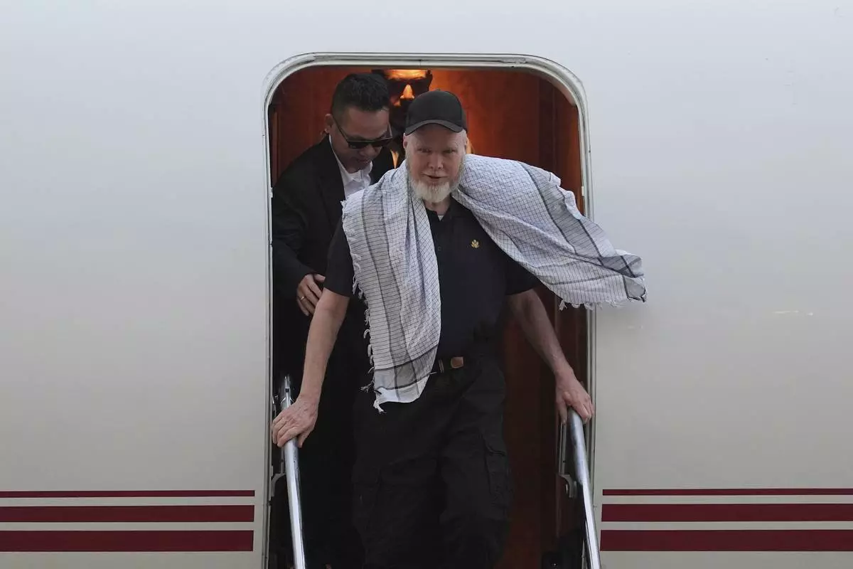American Dennis Coyle, who was released by Afghanistan's Taliban authorities who had held him for over a year, arrives in San Antonio, Wednesday, March 25, 2026. (AP Photo/Eric Gay)