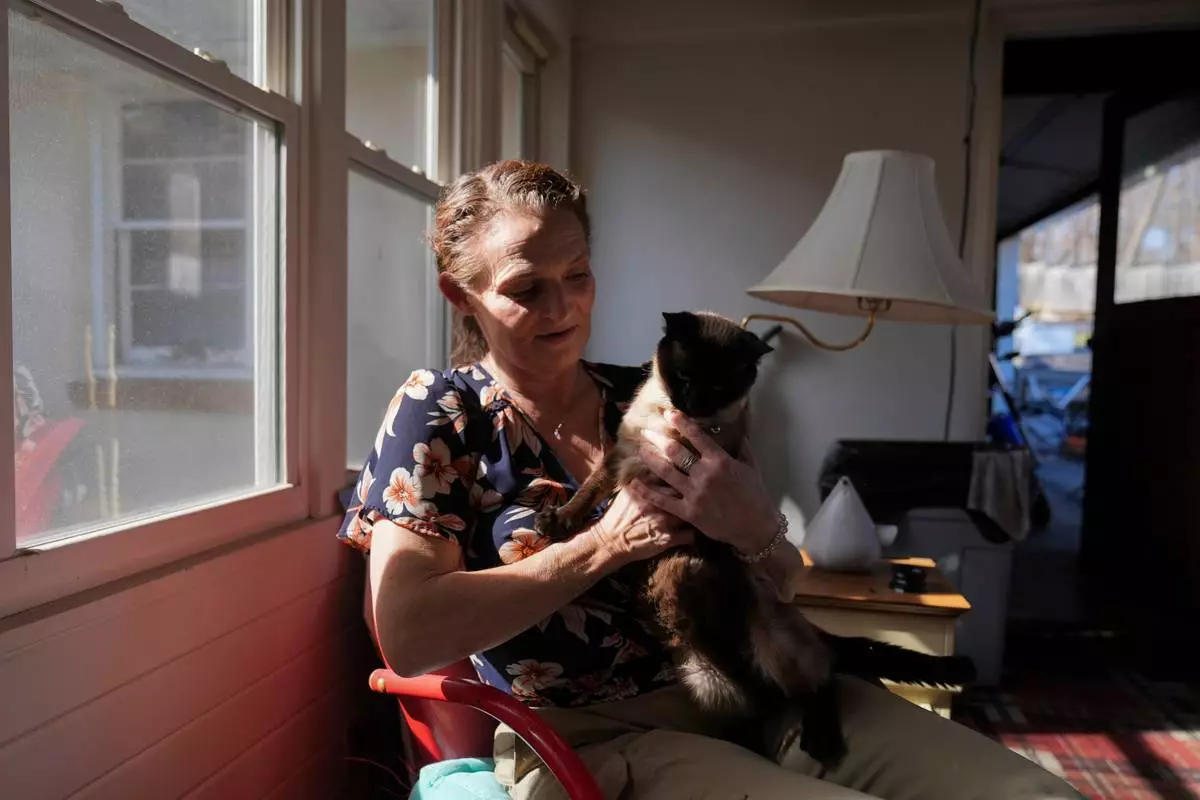 Jessica Thompson, 47, sits for a portrait at her Rockford, Ill., home on Saturday, March 21, 2026. (AP Photo/Erin Hooley)