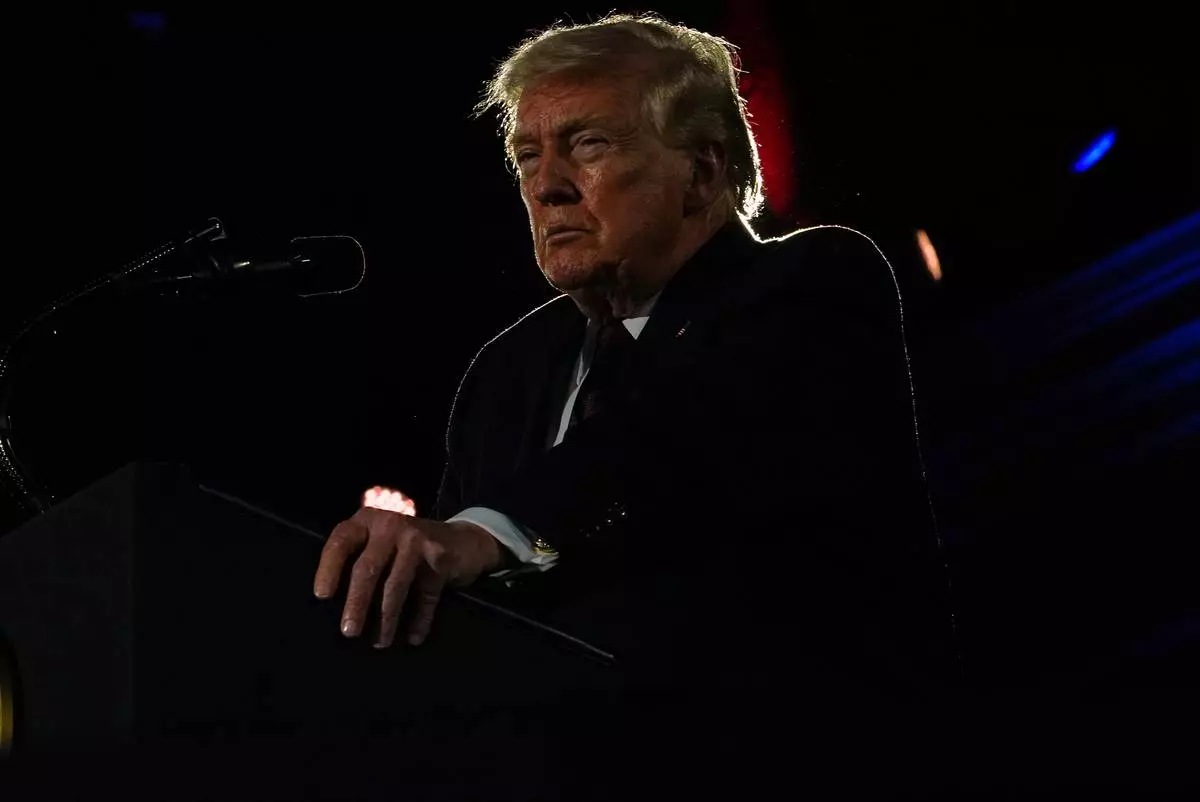 President Donald Trump speaks at the National Republican Congressional Committee's (NRCC) annual fundraising dinner, Wednesday, March 25, 2026, at Union Station in Washington. (AP Photo/Julia Demaree Nikhinson)