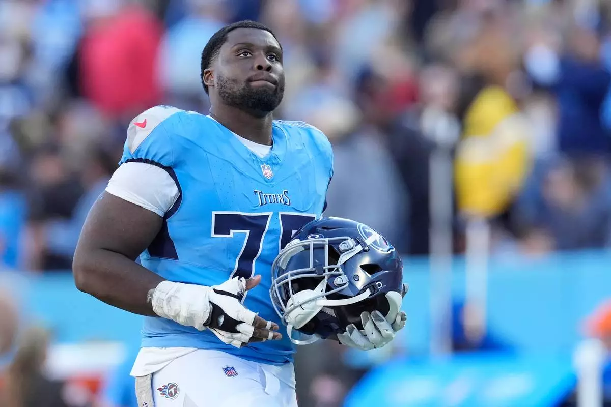 FILE - Tennessee Titans center Lloyd Cushenberry III (79) during the second half of an NFL football game against the Houston Texans, Nov. 16, 2025, in Nashville, Tenn. (AP Photo/George Walker IV, File)