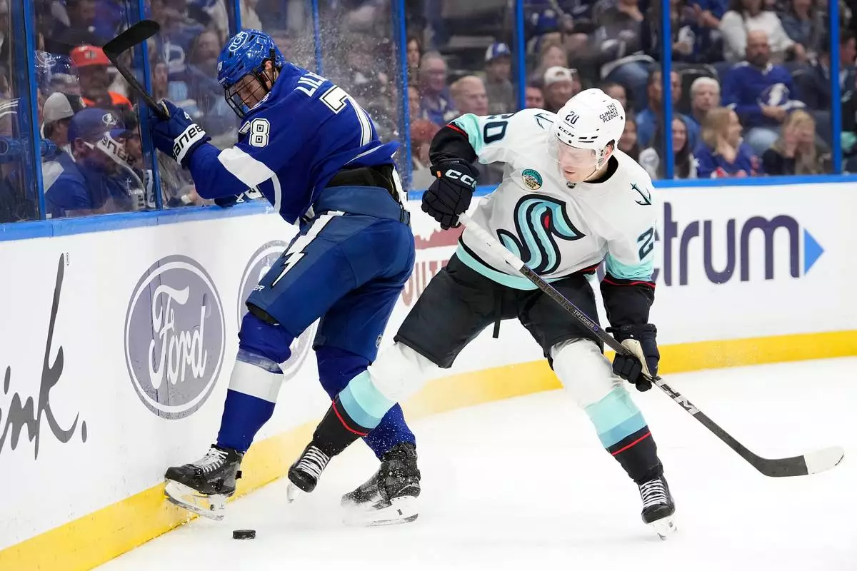 The Kraken opened the scoring with 4:42 left in the first period as Montour slipped around the defense to take a pass from Freddy Gaudreau and cut to the net for a backhand up and over Vasilevskiy. Cirelli pulled the Lightning even less than two minutes later. Seattle quickly regained the lead as Chandler Stephenson slipped around a check from Emil Lilleberg to find Kakko open in the slot with 1:48 remaining in the first.