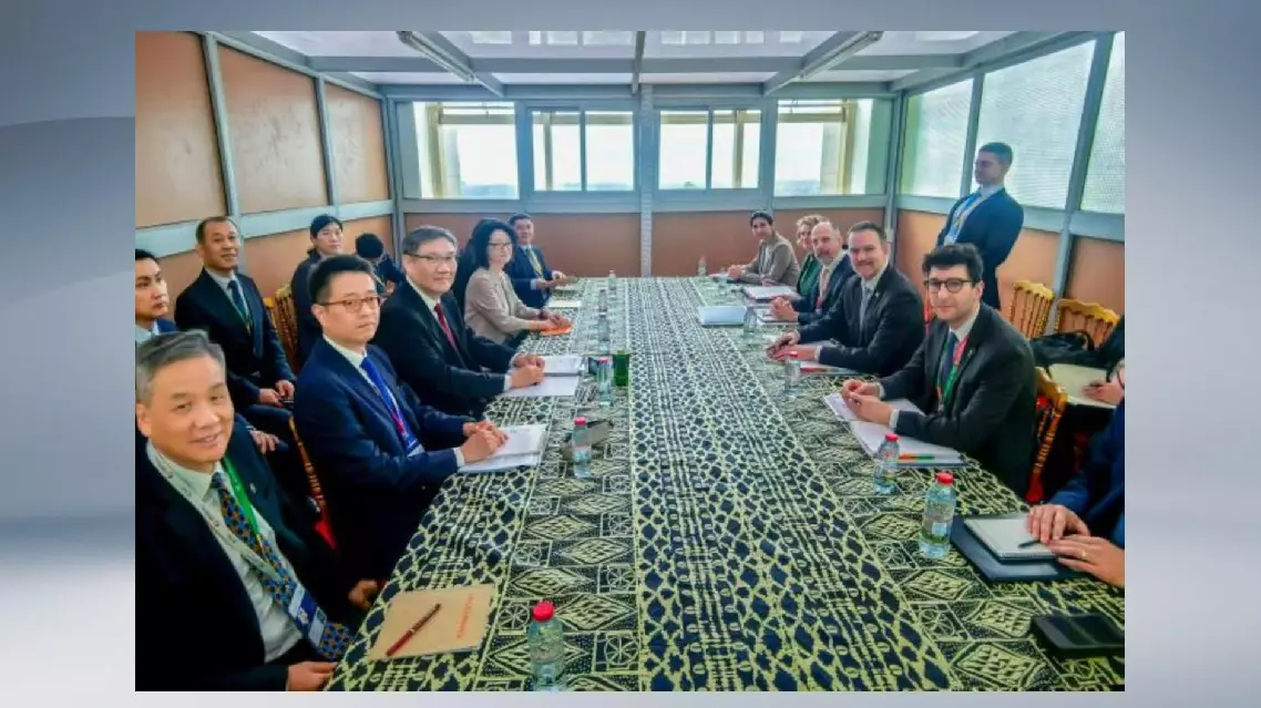 The meeting was held on the sidelines of the 14th Ministerial Conference of the World Trade Organization (WTO) in Yaoundé, Cameroon's capital.