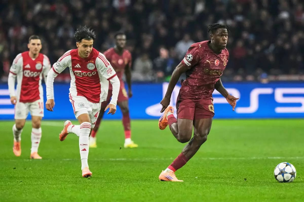 FILE - Ajax's Rayane Bounida, centre left, runs during the Champions League between Ajax and Galatasaray in Amsterdam, Netherlands, on Nov. 5, 2025. (AP Photo/Patrick Post, File)