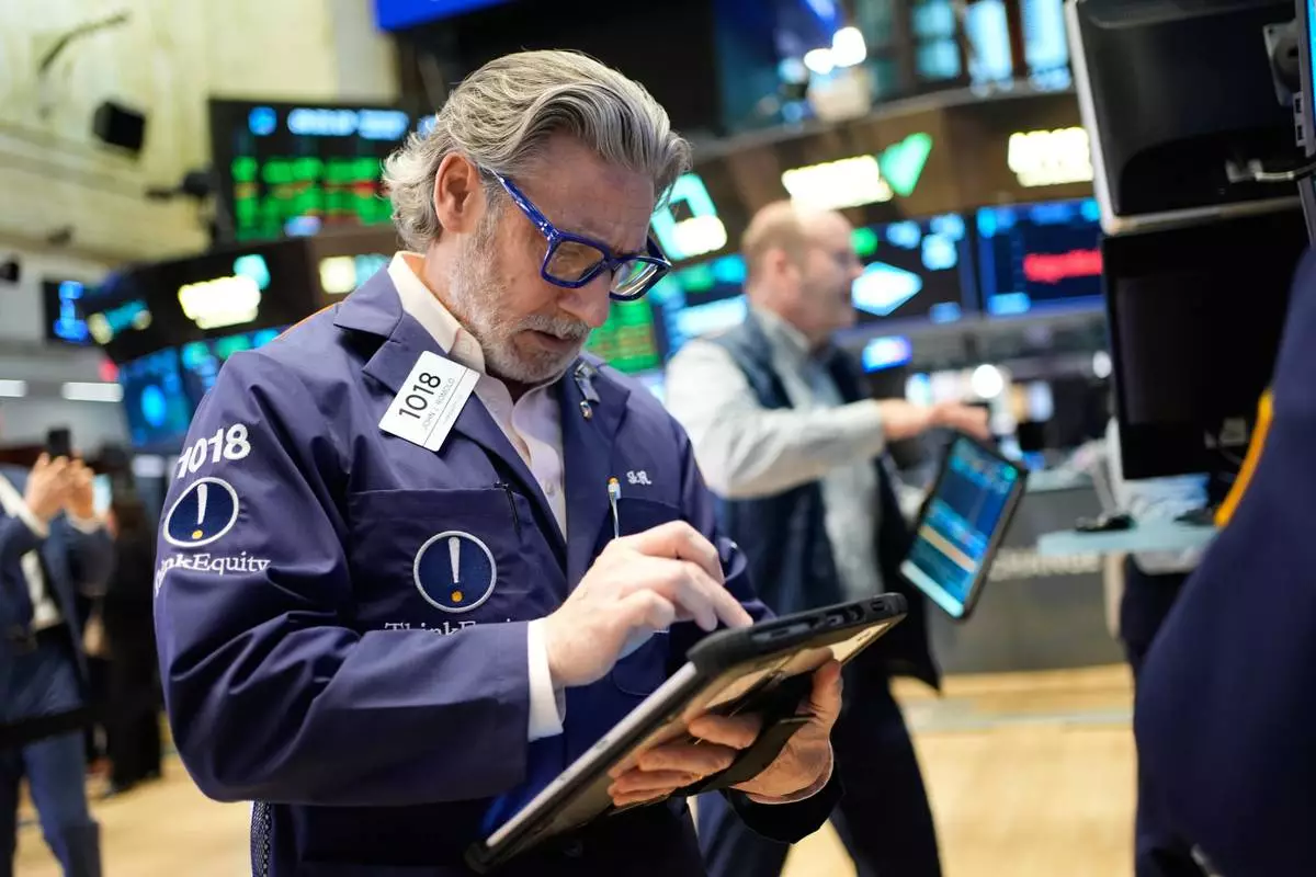 John Romolo works on the floor at the New York Stock Exchange in New York, Wednesday, March 25, 2026. (AP Photo/Seth Wenig)