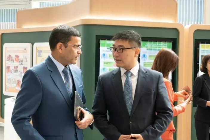 Legislative Councillor Dr Simon Lee and Consul-General Dr Lekhak (left) exchanged views at the Hong Kong Legislative Council