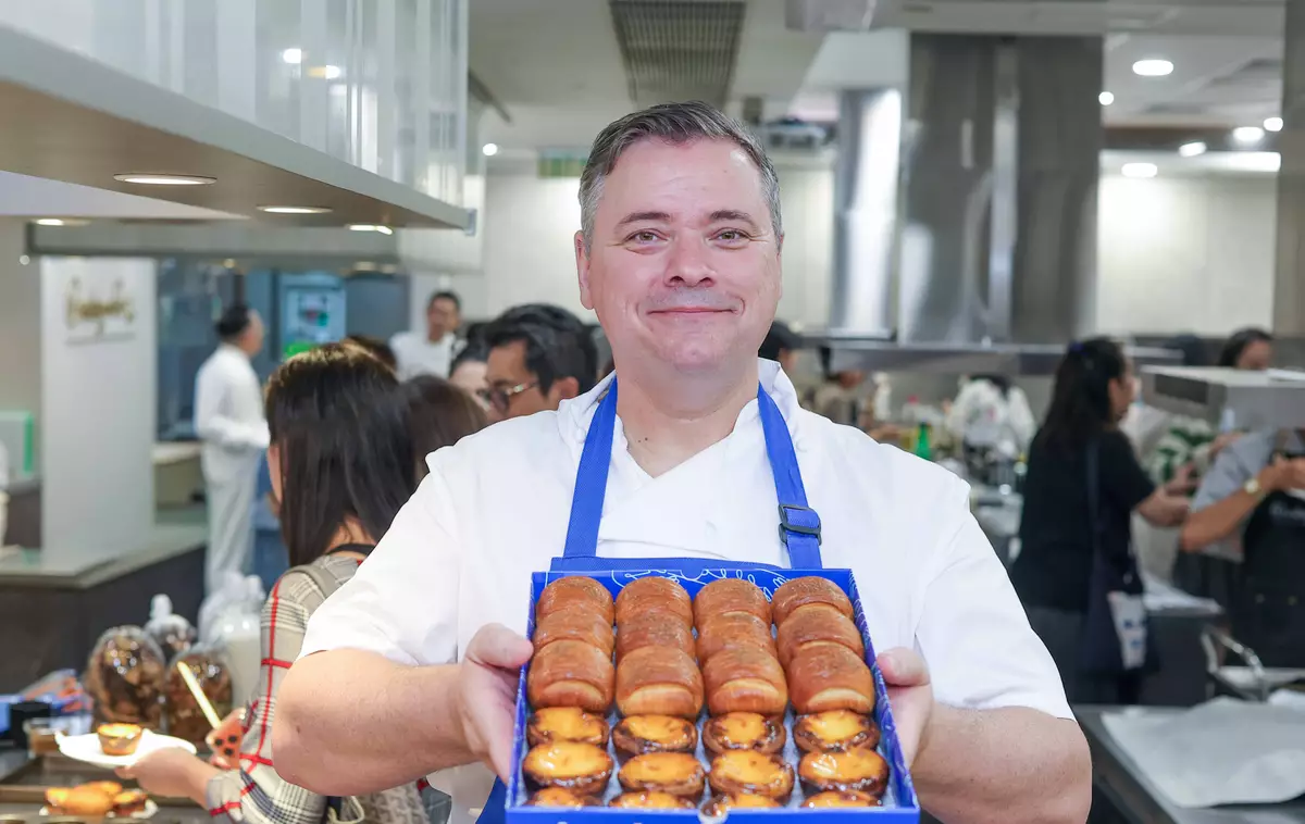 Chef Grégoire Michaud from Bakehouse leads an egg tart baking workshop, which is one of the recommended pastry shops under Taste Hong Kong, during the Asia’s 50 Best Restaurants 2026 Awards.