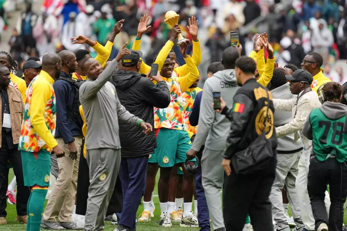 PARIS (AP) — Senegal players paraded the Africa Cup of Nations trophy in front of thousands of fans on Saturday, despite the Confederation of African Football's decision to strip the country of the title and award it to Morocco.