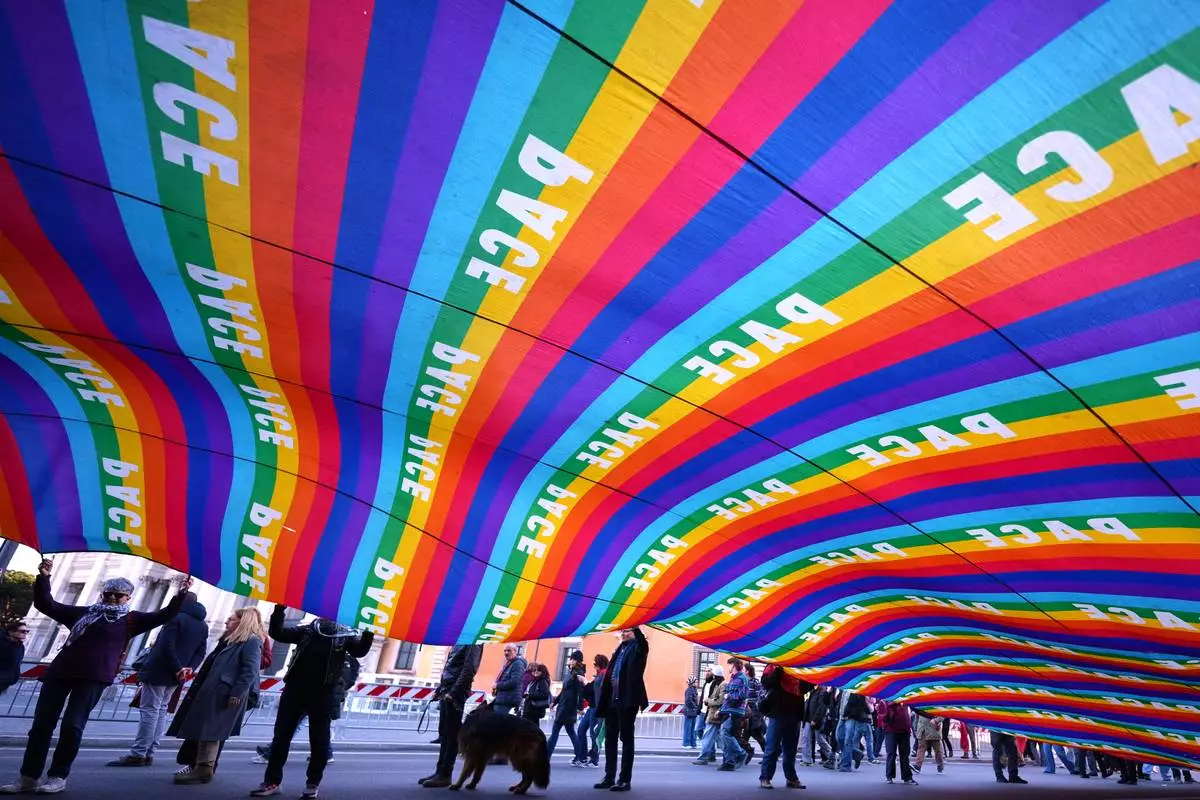 People take part in a national anti-war demonstration organized by "No Kings Italy movement" in Rome, Saturday, March 28, 2026. (AP Photo/Andrew Medichini)