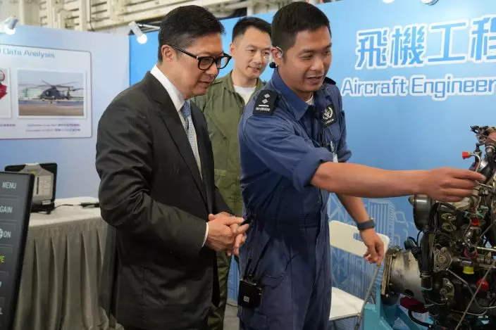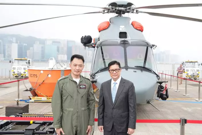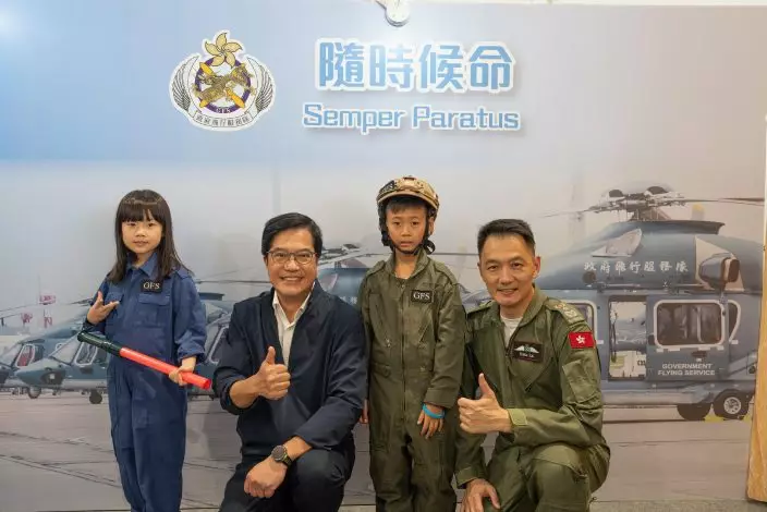 Interactive exhibition boards, national security-themed game booths, virtual-reality and augmented-reality games, as well as a discovery zone hosted by the Government Flying Service Aviation Inspiration International Academy, were set up on the open day to give members of the public a better understanding of the GFS operation. The Hong Kong Air Cadet Corps performed a Chinese-style foot drill and gave a pipe band performance during the open day. As a concluding performance, a helicopter search-and-rescue flight demonstration, simulating a maritime rescue operation, illustrated emergency response efforts by the GFS during life-saving missions.