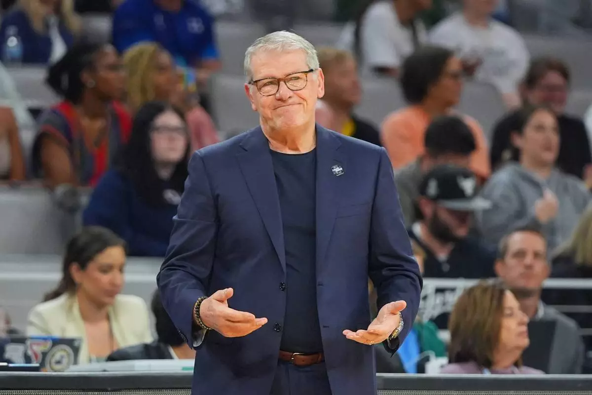 FORT WORTH, Texas (AP) — All-America forward Sarah Strong and her UConn teammates got quite a compliment from Geno Auriemma, their coach who donned a cowboy hat and did a little dance on the court after the undefeated Huskies made their 25th Final Four in the women’s NCAA Tournament.
