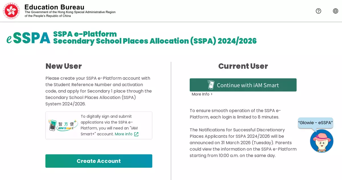 The EDB encourages parents to register with "iAM Smart+" as early as possible and activate their SSPA e-platform (eSSPA) (esspa.edb.gov.hk) account using "iAM Smart+" for more convenient and faster electronic services throughout the entire Secondary One application process. The SSPA e-Platform Parent's Guide is available on the EDB's website (www.edb.gov.hk/en/edu-system/primary-secondary/spa-systems/secondary-spa/general-info/sspa_eplatform_parents_guide.html) with a series of videos to introduce the procedures for submitting CA applications via the eSSPA.