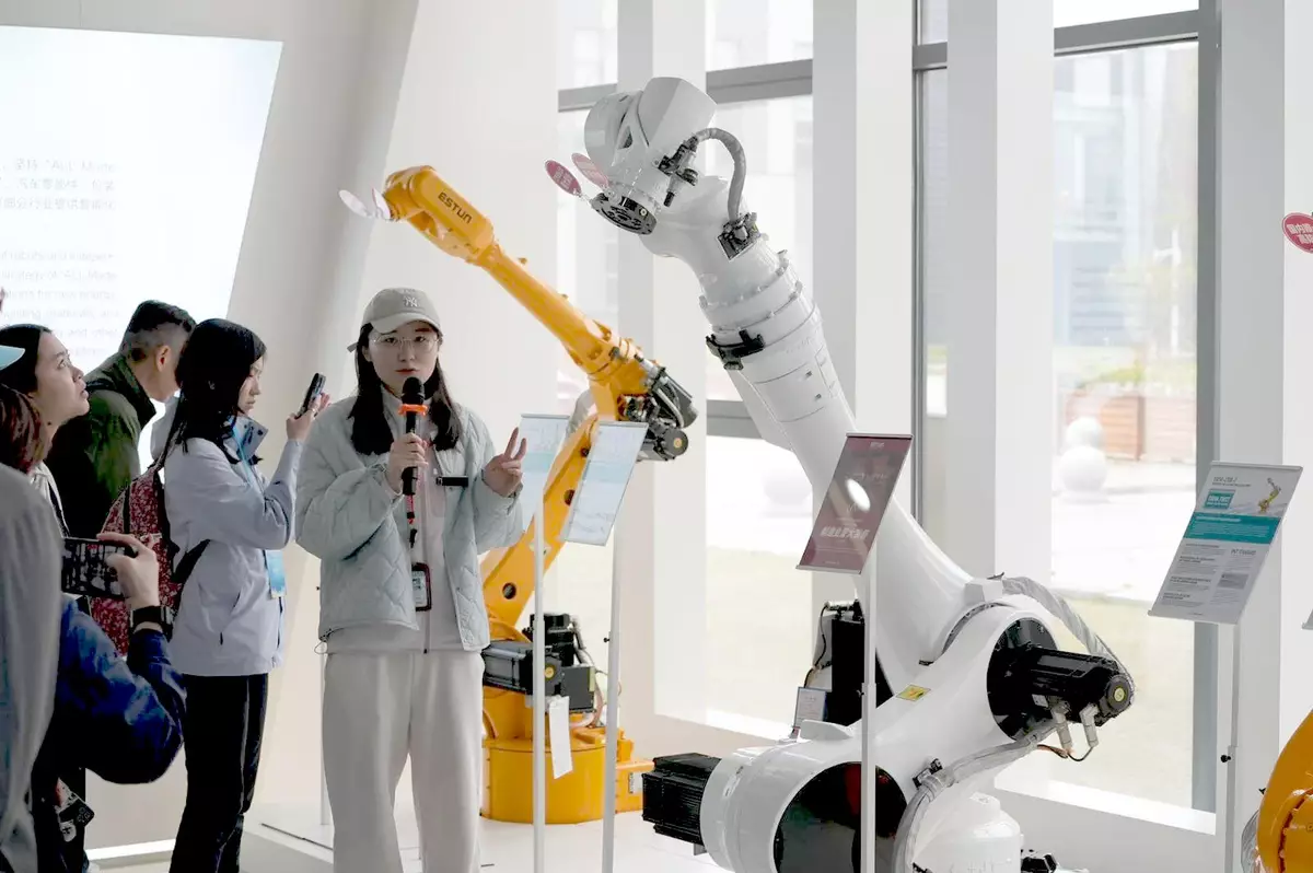 According to the docent, Estun Automation was founded in Nanjing in 1993 and developed China’s first domestically produced AC servo drive in 2001, breaking the tech monopoly of Japanese and European brands. It launched its first industrial robot in 2010, went public on the Shenzhen Stock Exchange in 2015, and followed with a listing on the Hong Kong Stock Exchange this March. To meet growing market demand, the corporation built a 180-acre intelligent robot industrial park, which was constructed in two phases and became fully operational in 2023.
