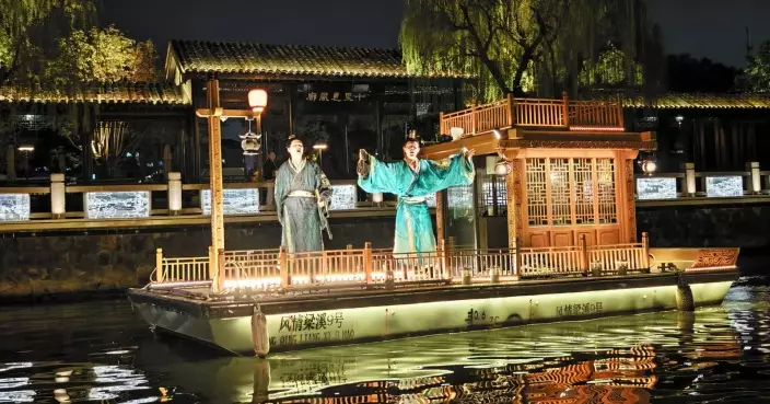 As night fell, the media delegation boarded a boat to admire the Qingming Bridge section of the ancient canal, where several live performances unfolded along the way. The opening act, “Prosperous Rain and Mist”, featured a duet sung in the soft Wu dialect. Next came a play of light and shadow, recreating the legend of the founding of the Wu Kingdom. The final chapter, “Canal Dwellers”, painted a vivid picture of life along the bustling water lanes.