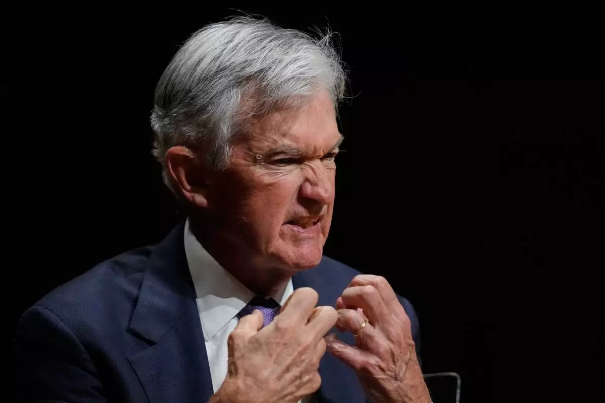 Federal Reserve Chair Jerome Powell gestures while addressing students at Harvard University, Monday, March 30, 2026, in Cambridge, Mass. (AP Photo/Charles Krupa)
